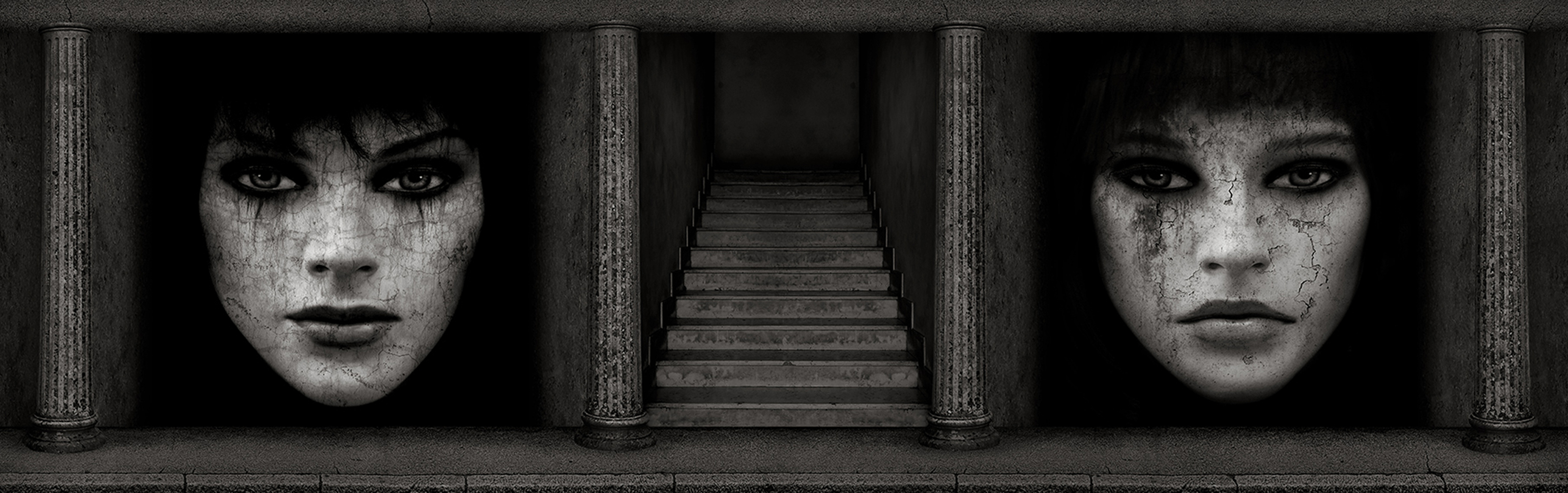 En présentant ses E.Dolls dans des éléments architecturaux choisis avec soin, Softtwix crée non seulement une mise en abîme qui renvoie aussi bien à une réalité qu’à une émotion. Cette tendance à placer la femme sur un piédestal, c’est-à-dire proposé à l’admiration de tous, l’artiste l’a d’ailleurs exploitée dans l’exposition « À contre-emploi » à la Collégiale Saint-Martin d’Angers. « Les contraintes liées à ce lieu patrimonial m’ont largement nourri, puisque mes E.Dolls s’insèrent dans des écrins, que je crée ou que je découvre dans l’espace public…, écrin transformé à La Collégiale en temple ». Encadrées par des colonnes antiques et séparées par un escalier, deux E.Dolls s’imposent dans un effet trompe-l’œil magistral. « En harmonie l’une avec l’autre, les deux E.Dolls pourraient être jumelles, et pourtant…». À bien y regarder, on comprend en effet qu’aux traits angéliques de l’une répondent les traits diaboliques de l’autre. « J’ai réellement voulu être “À contre-emploi“ pour cette installation dans la plus vieille église d’Angers, en jouant avec l’ange, le diable et l’escalier », s’amusent Softtwix, parfaitement consciente de « chatouiller » sa conscience et la notre en marquant avec justesse la dualité qui est en chacun de nous et des choix que l’on doit régulièrement faire. Ne sommes-nous pas toutes et tous à la fois ange et démon ? Devant cette oeuvre, où vous situez-vous ? Et monterez-vous l’escalier pour découvrir ce qu’il y a en haut ?