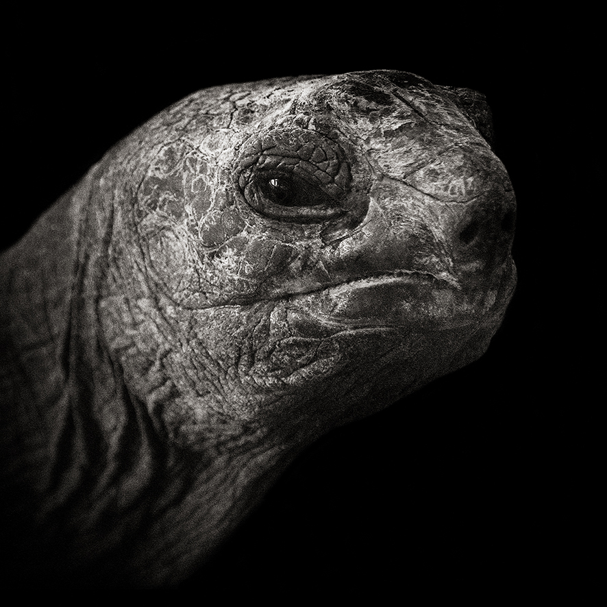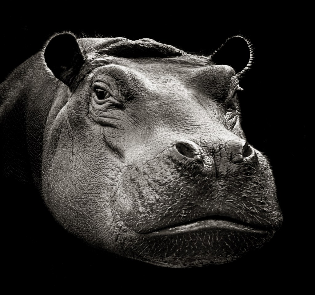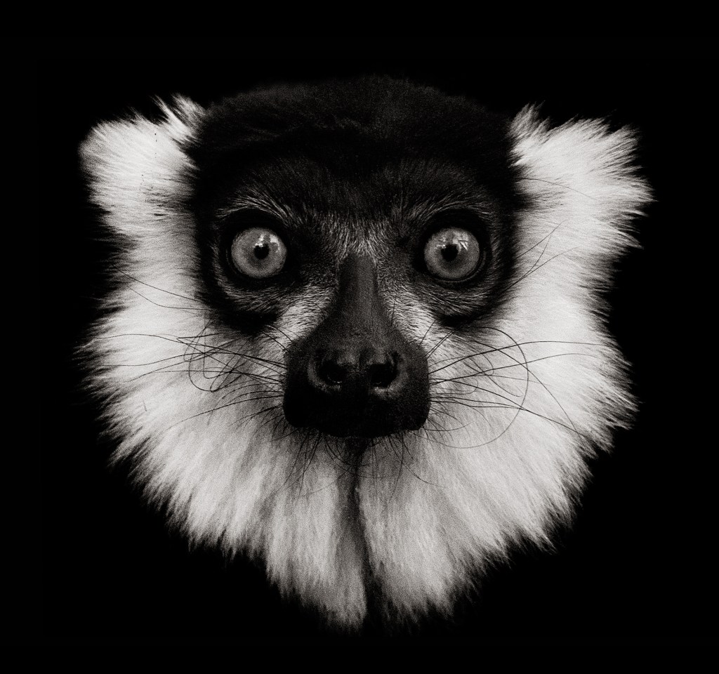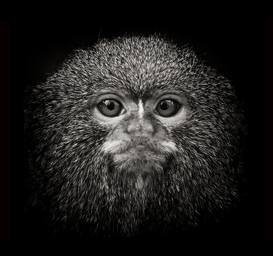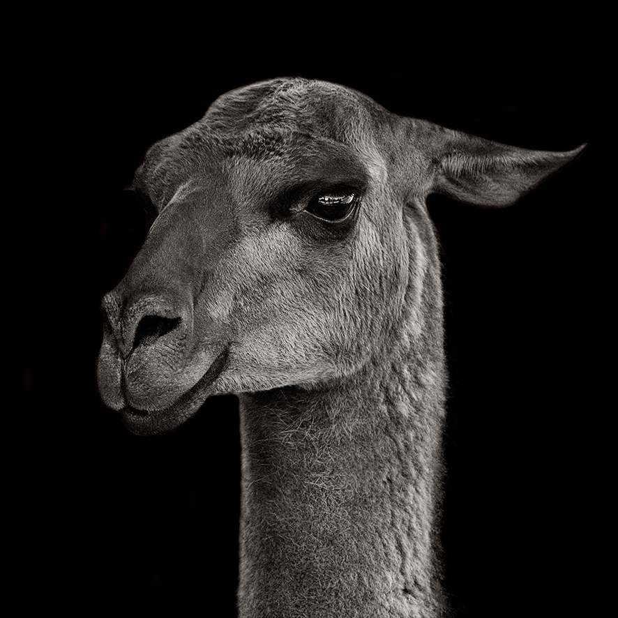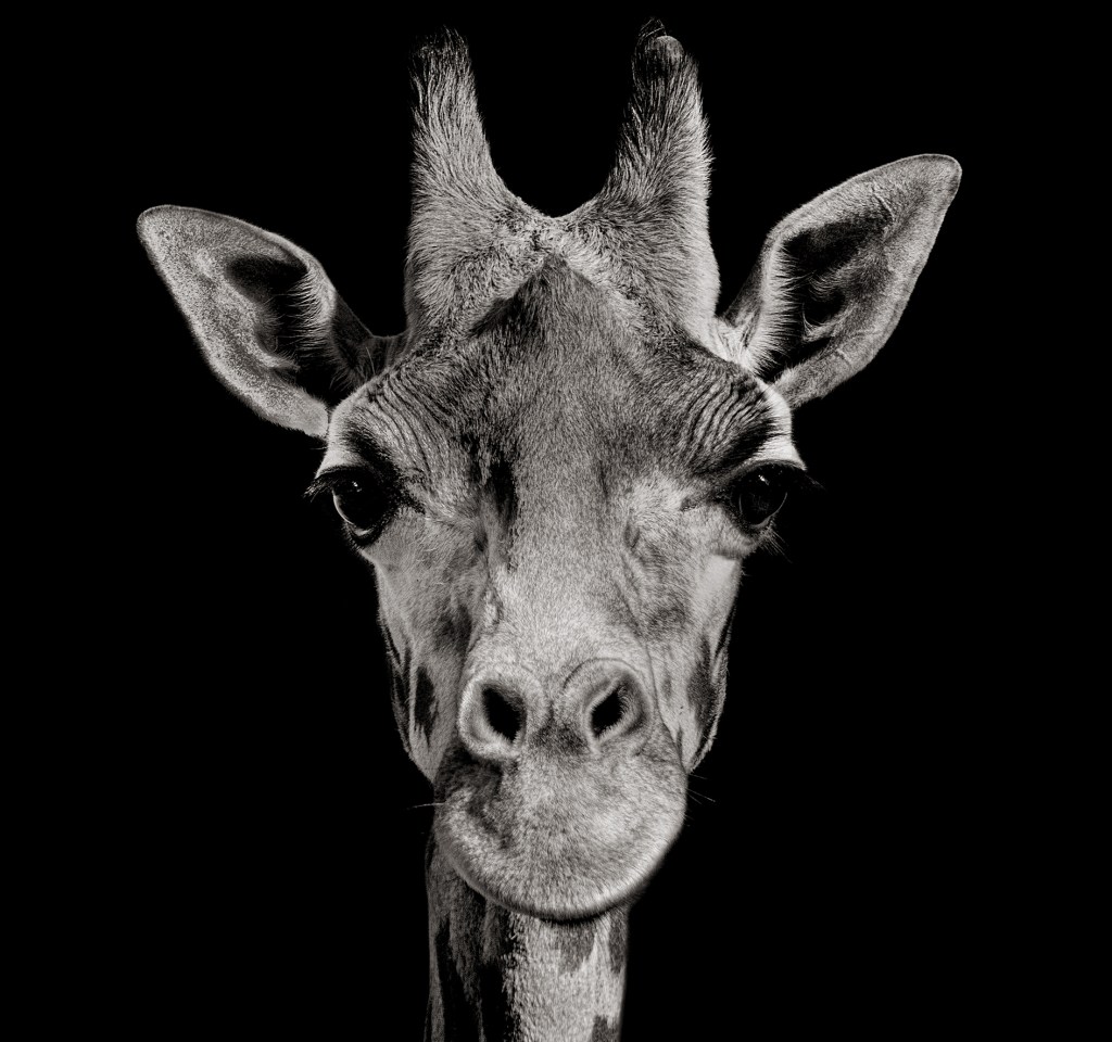 La rigueur formelle de son dispositif renforce encore la puissance de chaque image. Tous ses portraits obéissent à une même grammaire visuelle : cadrage resserré sur le visage, point de vue frontal, fond noir, composition épurée au maximum. Ce cadre récurrent, pensé comme un écrin, permet de faire émerger la personnalité de chaque animal sans artifice. Le contexte disparaît au profit de l’essentiel. Peu importe que la prise de vue ait eu lieu dans une ferme reculée, une réserve naturelle ou un refuge : l’animal est toujours présenté dans un même espace mental, une même lumière, comme un acteur que l’on inviterait à s’exprimer sur une scène nue.