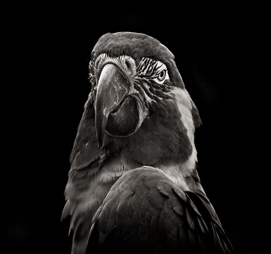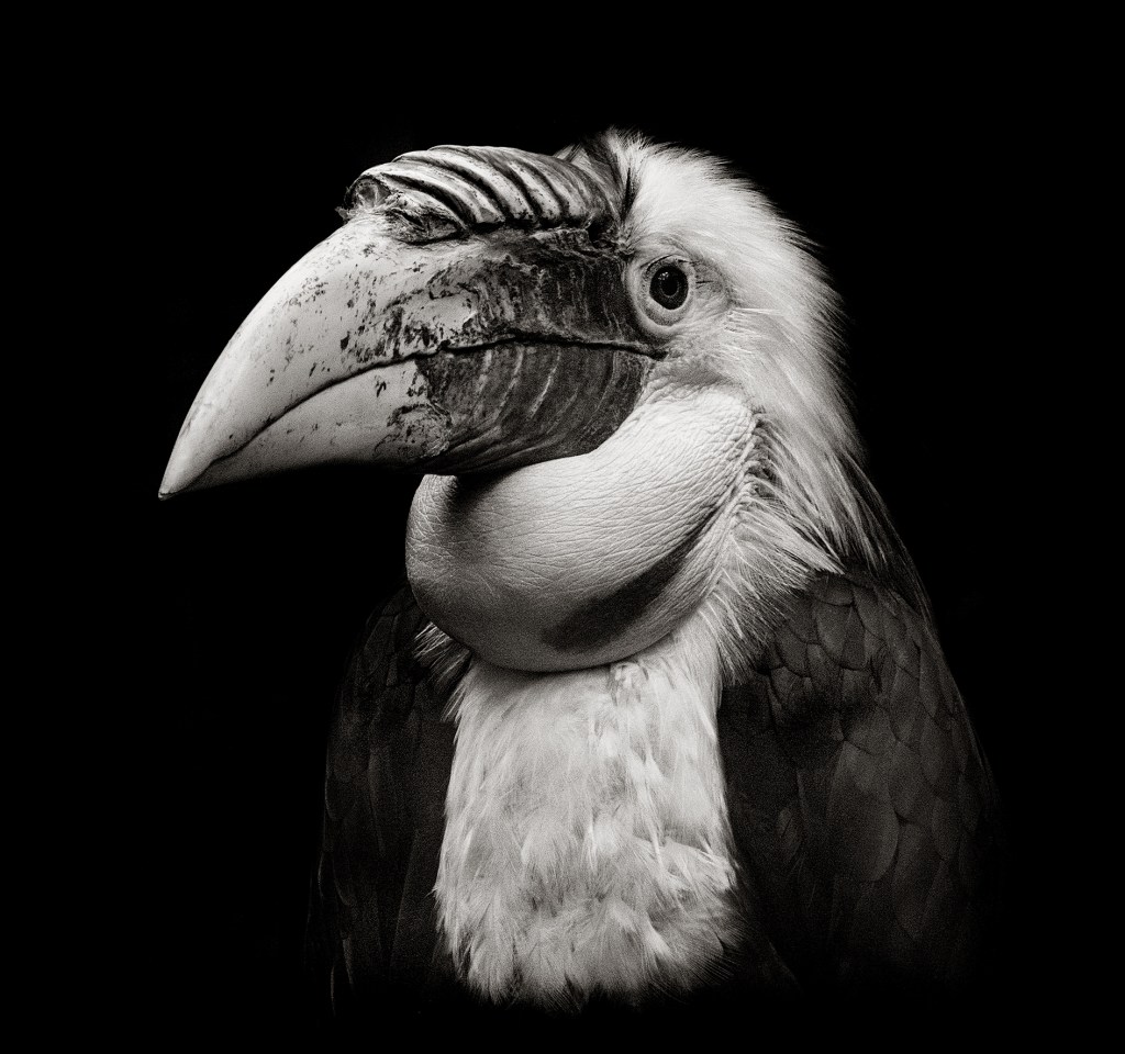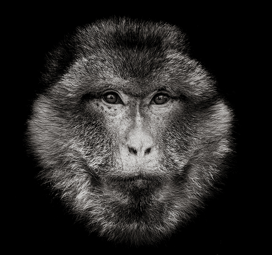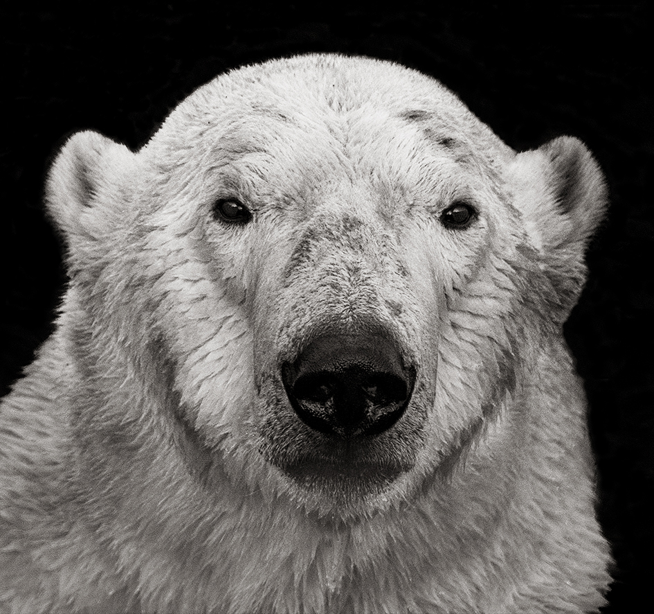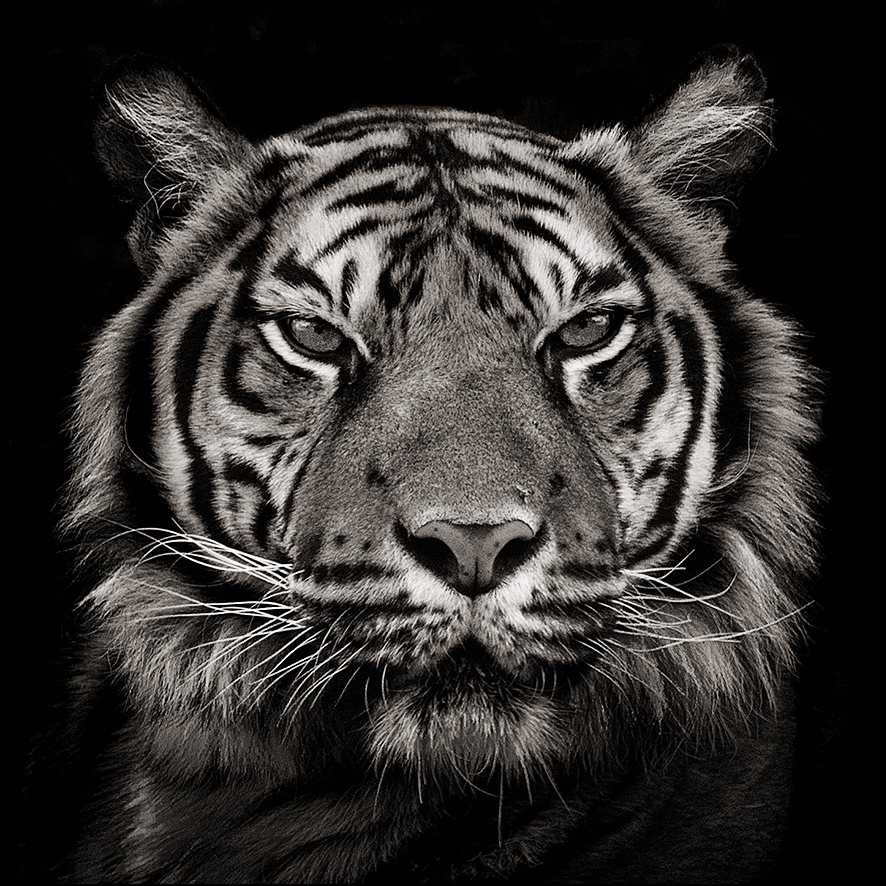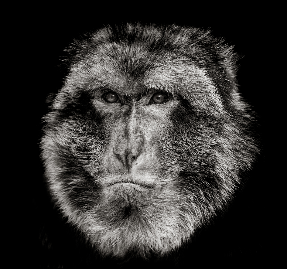 La rigueur formelle de son dispositif renforce encore la puissance de chaque image. Tous ses portraits obéissent à une même grammaire visuelle : cadrage resserré sur le visage, point de vue frontal, fond noir, composition épurée au maximum. Ce cadre récurrent, pensé comme un écrin, permet de faire émerger la personnalité de chaque animal sans artifice. Le contexte disparaît au profit de l’essentiel. Peu importe que la prise de vue ait eu lieu dans une ferme reculée, une réserve naturelle ou un refuge : l’animal est toujours présenté dans un même espace mental, une même lumière, comme un acteur que l’on inviterait à s’exprimer sur une scène nue.