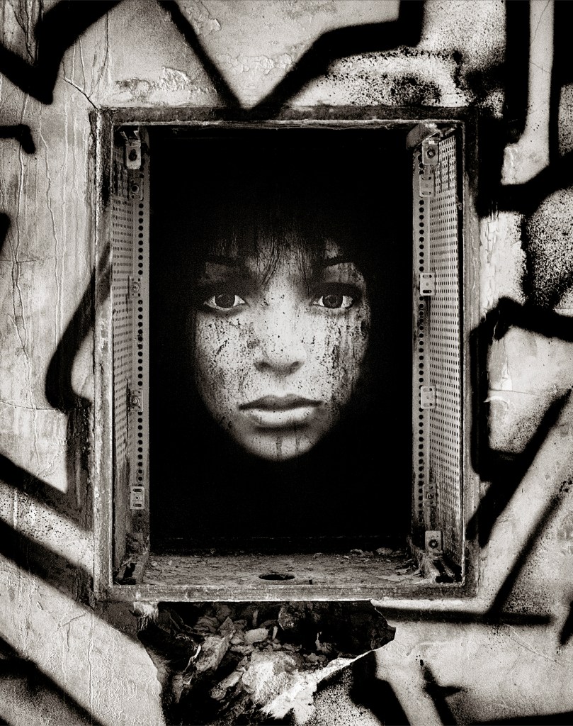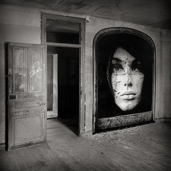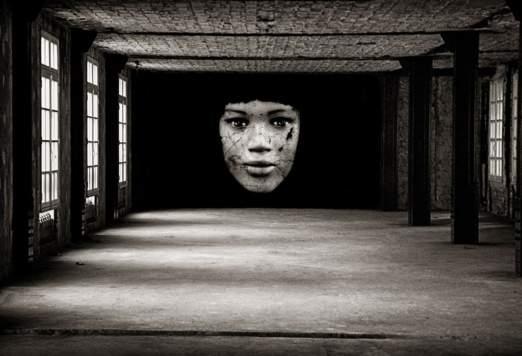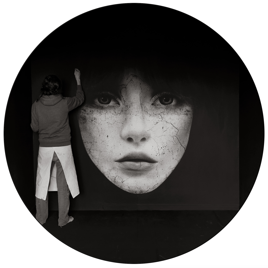 Started in early 2014, the E.Doll Project unfolds through urban installations. My photos—faces of women on black backgrounds, in XXL format—are pasted on city walls, abandoned buildings, or active construction sites. I look for the perfect interaction between the site and the E.Doll I’ve created, to reveal the full intensity of her gaze. I wanted to create that face-to-face moment… “My E.Dolls are unsettling; they challenge, confront, provoke. Everyone is free to project their own story onto them…”