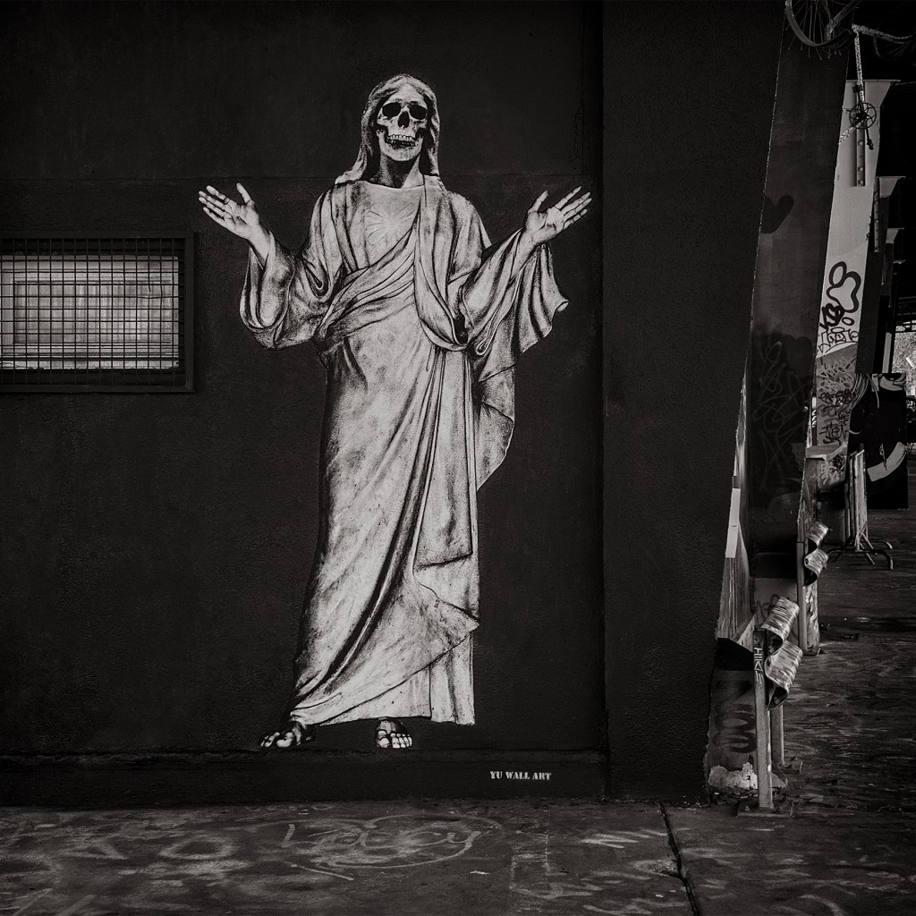 Ses installations prennent la forme d’évocations énigmatiques, obsessionnelles, parfois troublantes, où l’être humain n’apparaît plus que sous les traits d’icônes crâniennes aux regards perçants. Ces figures ne sont pas des représentations macabres, mais des présences. Elles observent, veillent, interrogent. Dans une mise en scène soignée et immersive, Yu compose des tableaux photographiques d’une grande densité symbolique, où chaque élément – lumière, décor, posture – semble chargé d’un sens caché.